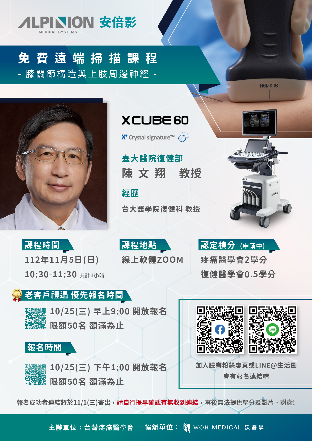 非常榮幸能邀請到 台大醫學院復健部 🔥陳文翔教授🔥擔任這次課程講師,為大家帶來「膝關節構造與上肢周邊神經波」課程。