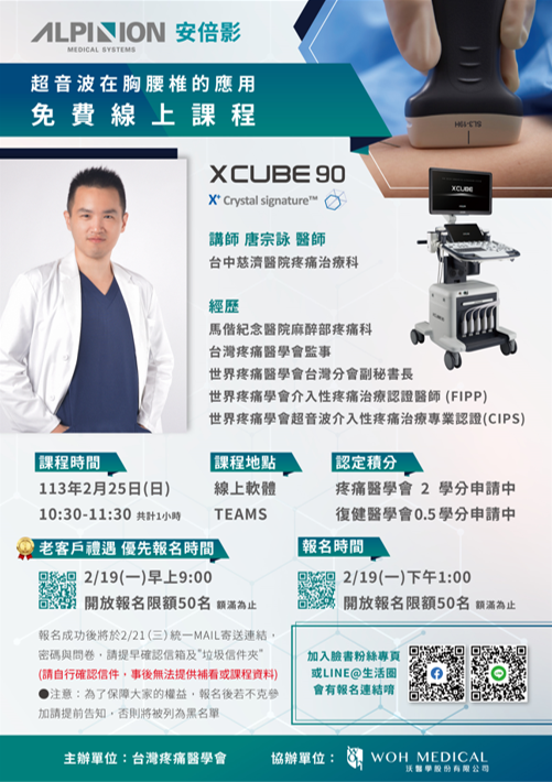 非常榮幸能邀請到 台中慈濟疼痛科 🔥唐宗詠醫師🔥擔任這次課程講師,為大家帶來「超音波在胸腰椎的運用」課程。