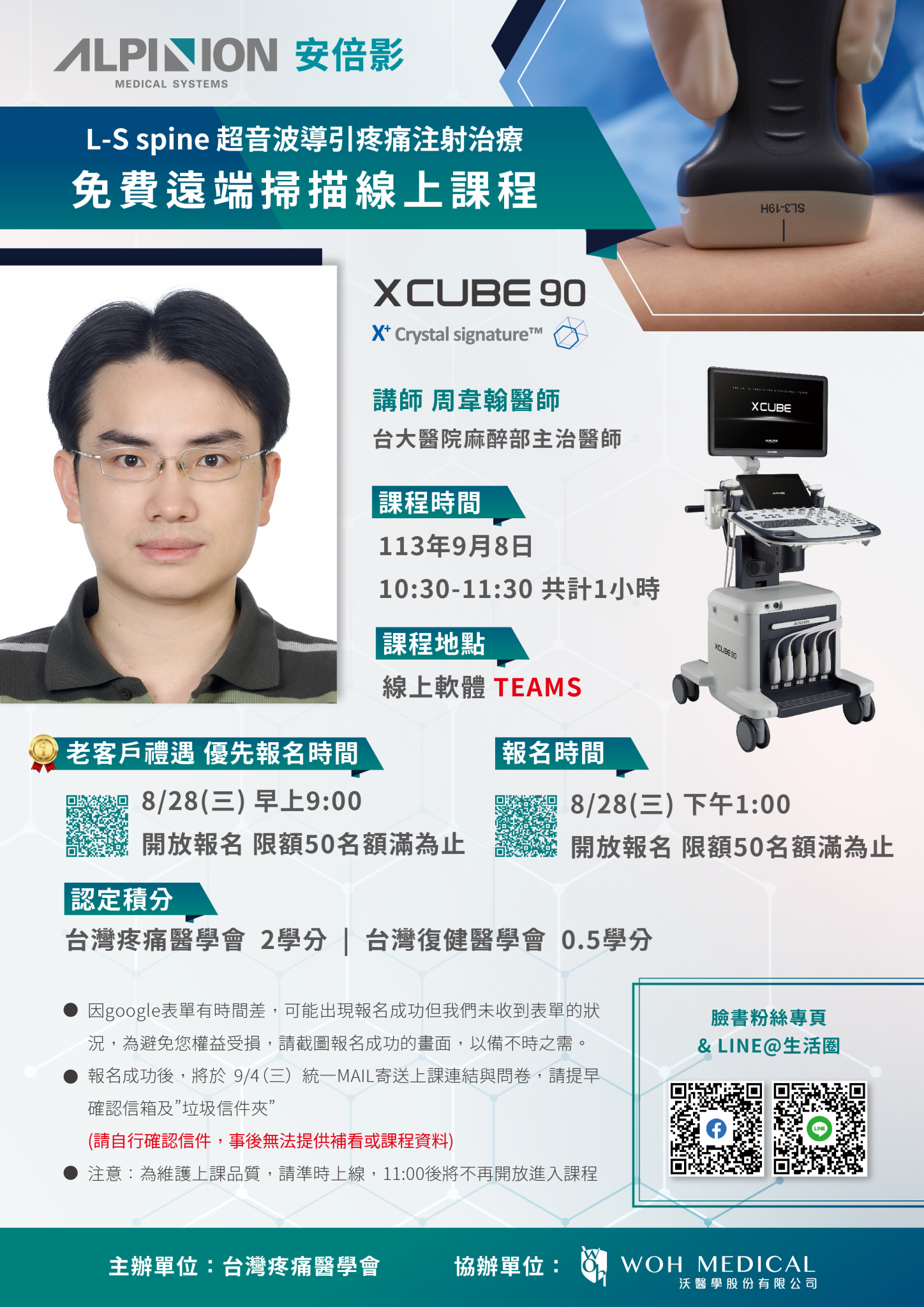 非常榮幸能邀請到 台大麻醉部主治醫師 🔥周韋翰醫師🔥擔任這次課程講師,為大家帶來「L-S spine 超音波導引疼痛注射治療」課程。