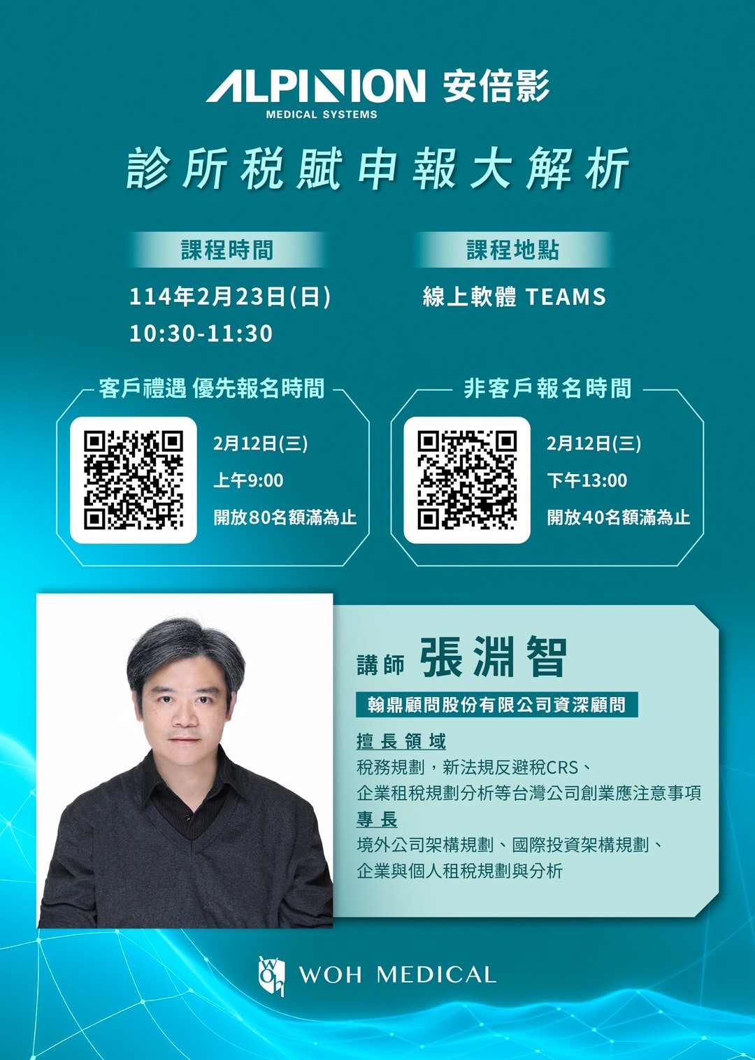 非常榮幸能邀請到 翰鼎顧問股份有限公司資深顧問 🔥張淵智🔥擔任這次課程講師,為大家帶來「診所稅賦申報大解析」課程。