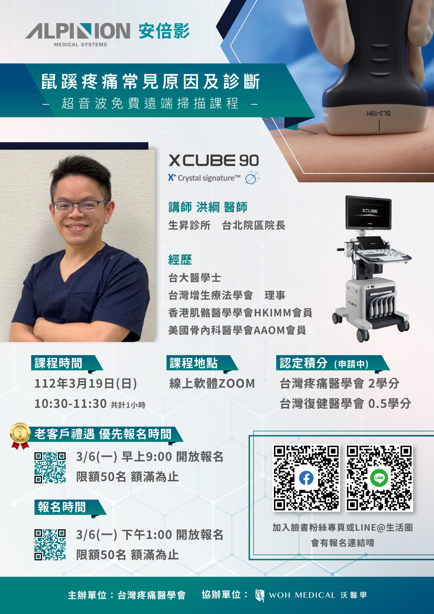 擔任這次課程講師,為大家帶來「鼠蹊疼痛常見原因及診斷」超音波課程。
