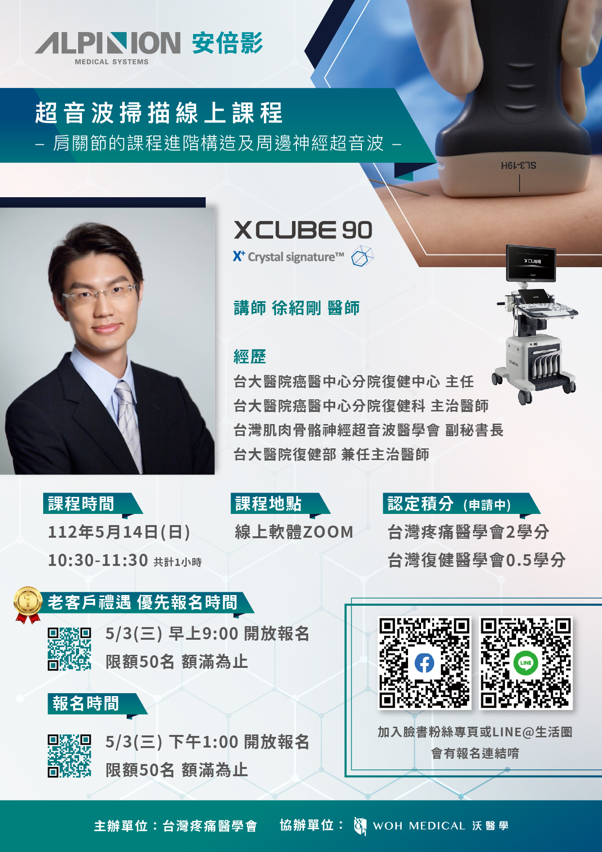 非常榮幸能邀請到 台大癌醫復健中心主任 🔥徐紹剛醫師🔥擔任這次課程講師,為大家帶來「肩關節的課程進階構造及周邊神經超音波」課程。